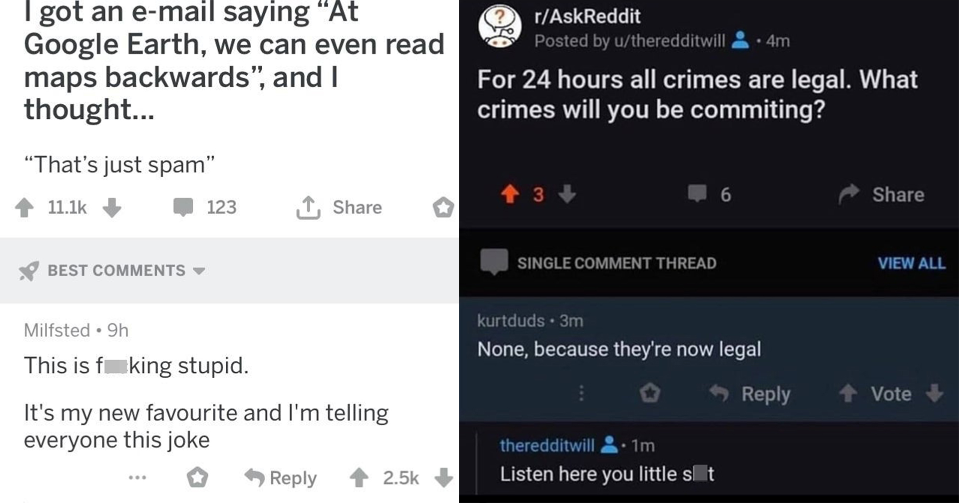 Hilarious Joke Dirtybomb from i.redd.it Welcome to r/funny, reddit's largest humour depository. Many of the dark humor reddit jokes and puns are jokes supposed to be funny, but some can be offensive. When they woke up, they were at the leader of the tribe's throne. Last night, when her friend came to her, i heard when she whispered to her: Jokes give a light funny shot and fits in every environment. These jokes may or may not have come from dads. Ask reddit is a forum where people can ask a question of the community and get responses from people from all walks of life. They say a joke becomes a dad joke when it becomes apparent.